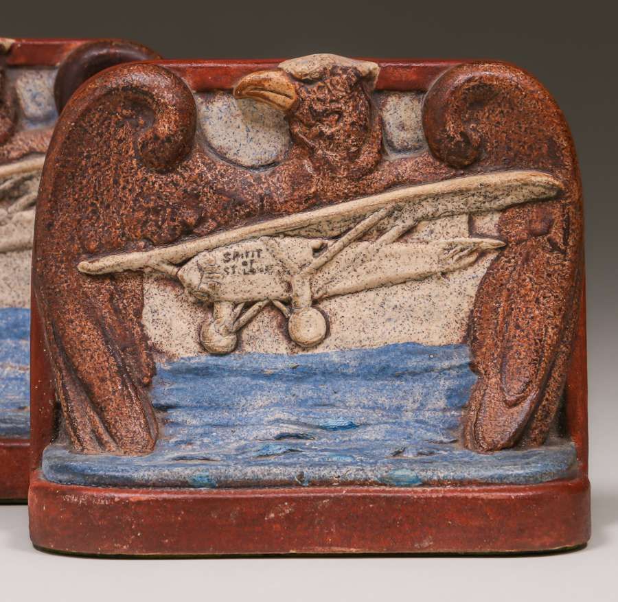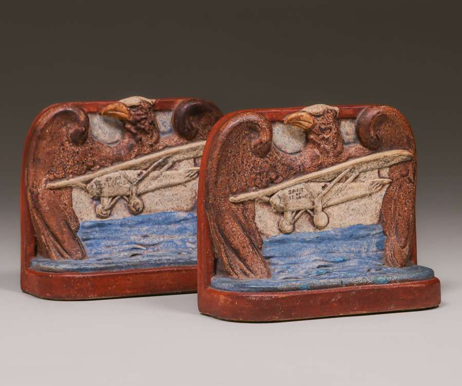 - Cal Art Tile Co – Richmond, CA Ceramic “Spirit of St Louis” Bookends c1927