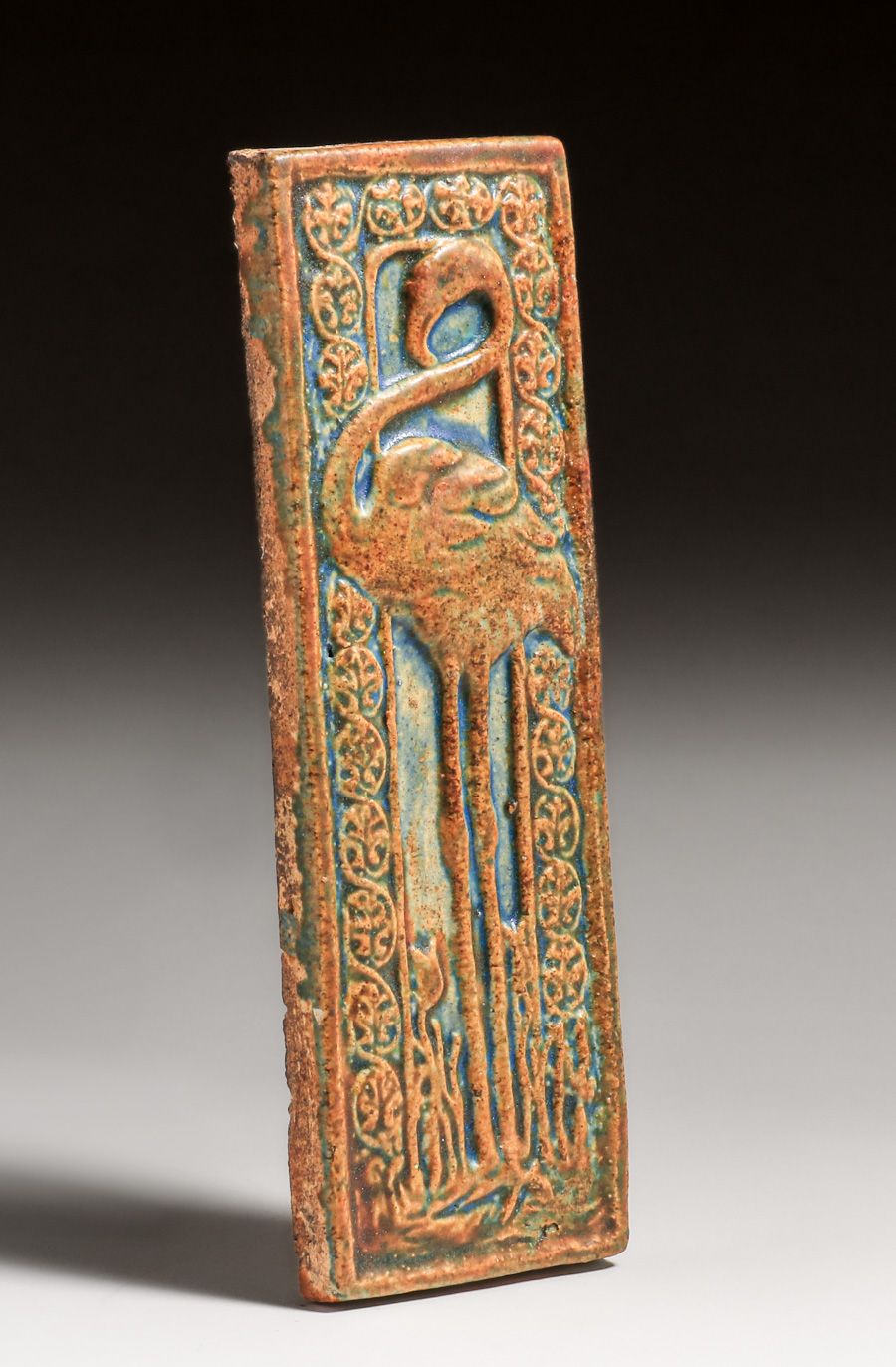 Calco Tile Co - Los Angeles Flamingo Tile c1920s. Grout covers signature. Previously installed, otherwise perfect condition. 11 5/8"h x 3.75"w SOLD