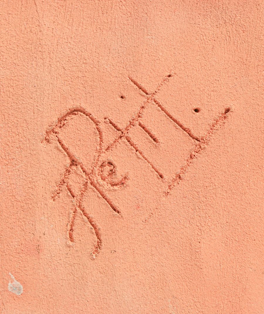 California Faience - Berkeley High School Student Jester Tile c1930s. Signed "A Petit". Perfect condition. 6" x 6" SOLD
