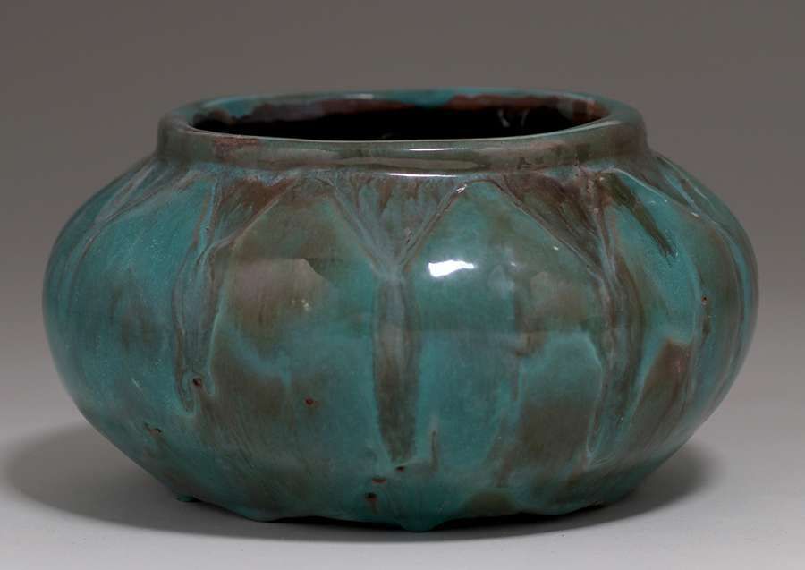 - California Faience Carved Squat Vase 1945