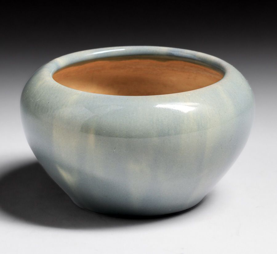 California Faience Cloudy Grey Closed Bowl c1920s. Signed. Perfect condition. From the Collection of Kirby Brown, author the California Faience Book. 4.75"d x 2 5/8"h SOLD