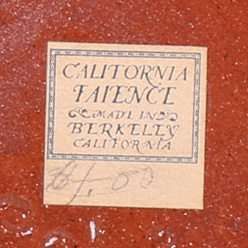 California Faience Poppy Tile with beautiful matte glazes. Signed and original paper label. Perfect condition. 5.25"d SOLD