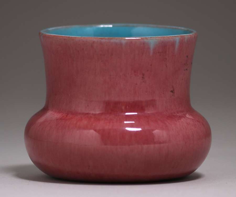 California Faience - Sorcha Boru (Claire Everett Jones Stewart) burgundy and turquoise vase c1930s. Signed "SBC". Perfect condition. Kirby Brown Collection. 2 3/8"h x 3"d SOLD