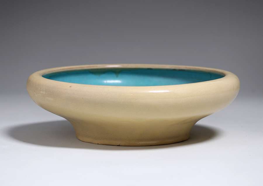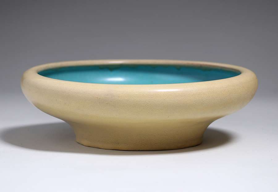 - California Faience Yellow & Turquoise Fruit Bowl c1920s