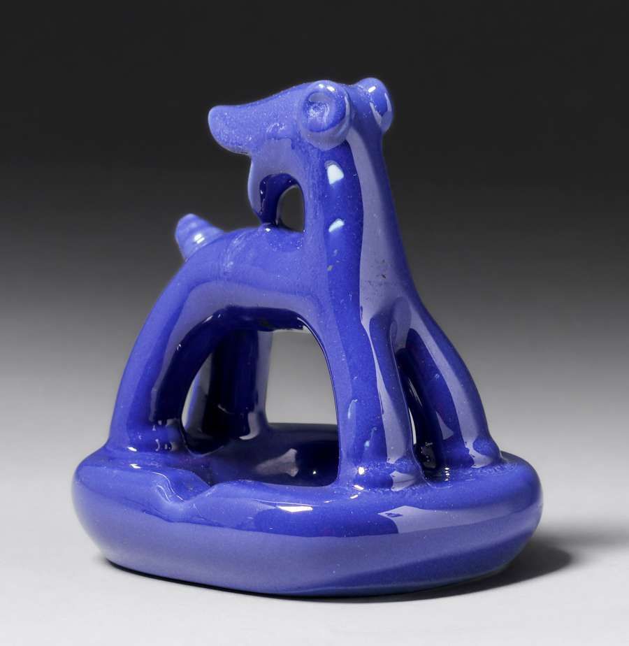 - California Porcelain Art Deco Blue Glazed Figural Dog c1927-1929