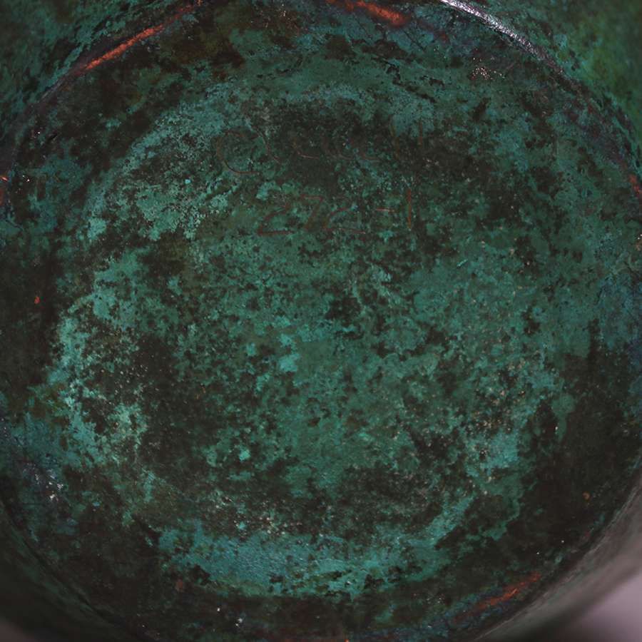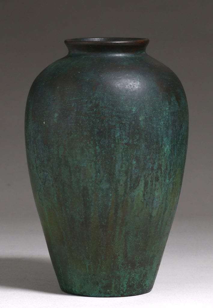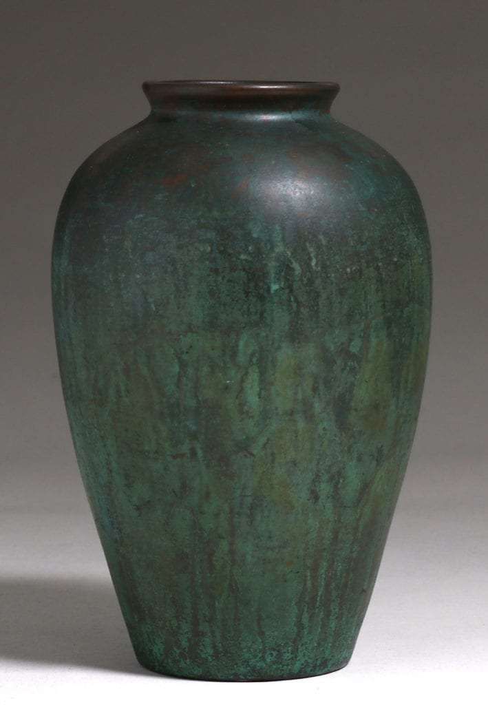 Large Clewell copper-clad vase. Signed and numbered "272-1". Small 1/2" area of lifting to copper near rim, otherwise excellent original patina. 11"h x 7"d SOLD