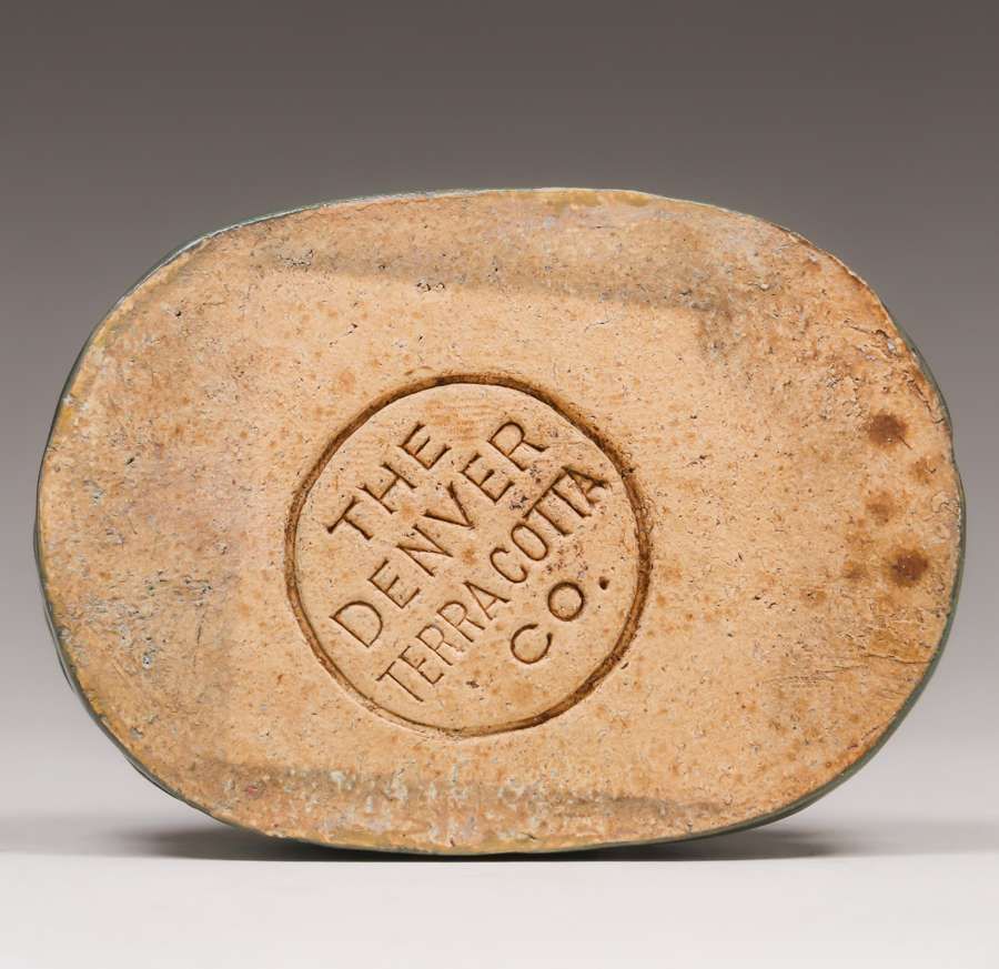 - Denver Terra Cotta Co Matte Green Scarab Paperweight c1910