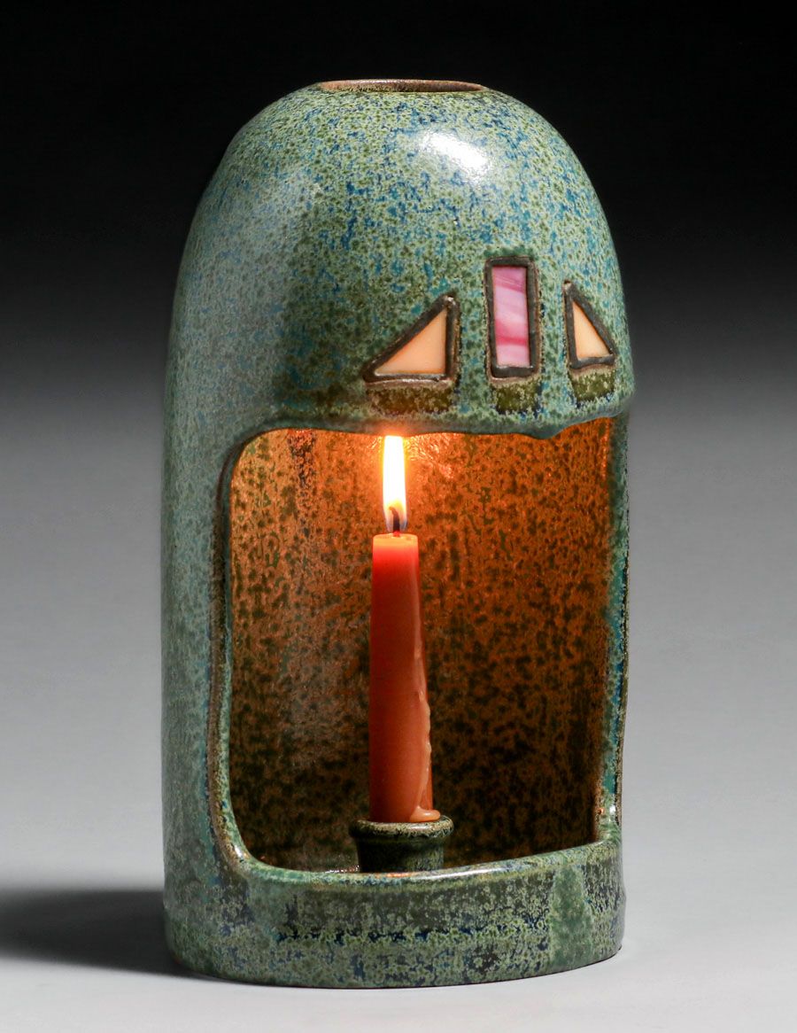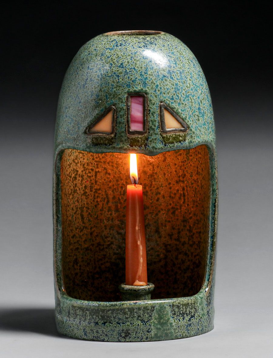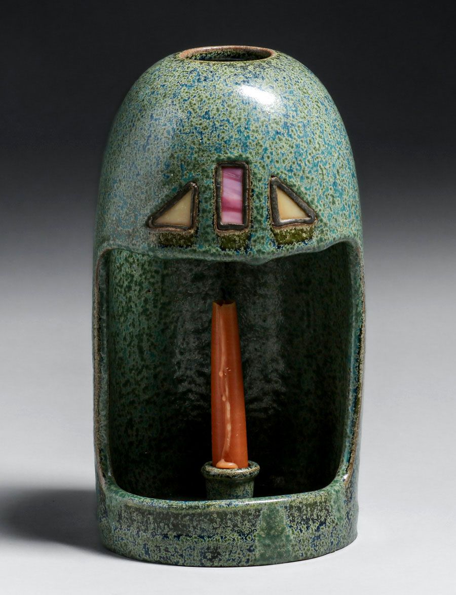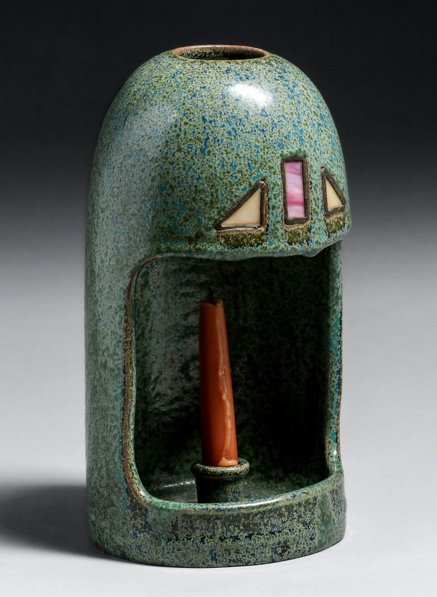 - Fulper Pottery #1000 Leaded Glass Candle Sconce c1910