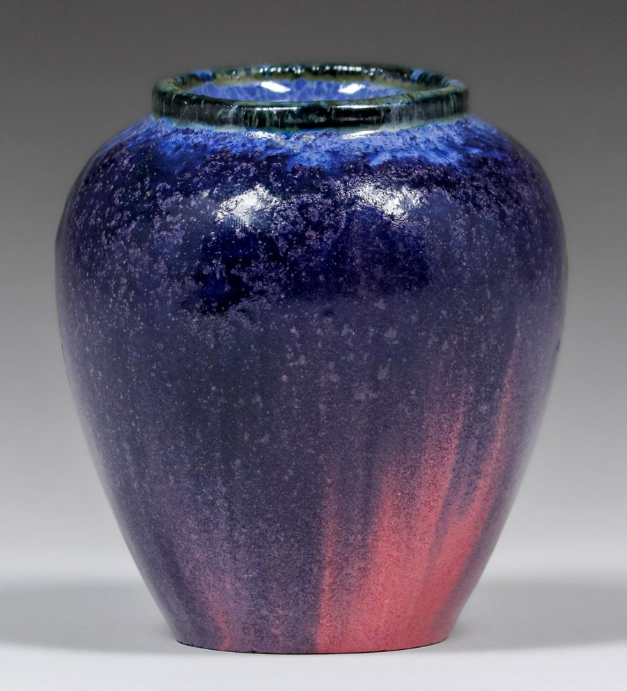 - Fulper Pottery Chinese Blue & Pink Flambe Jar c1910s