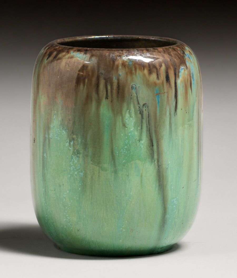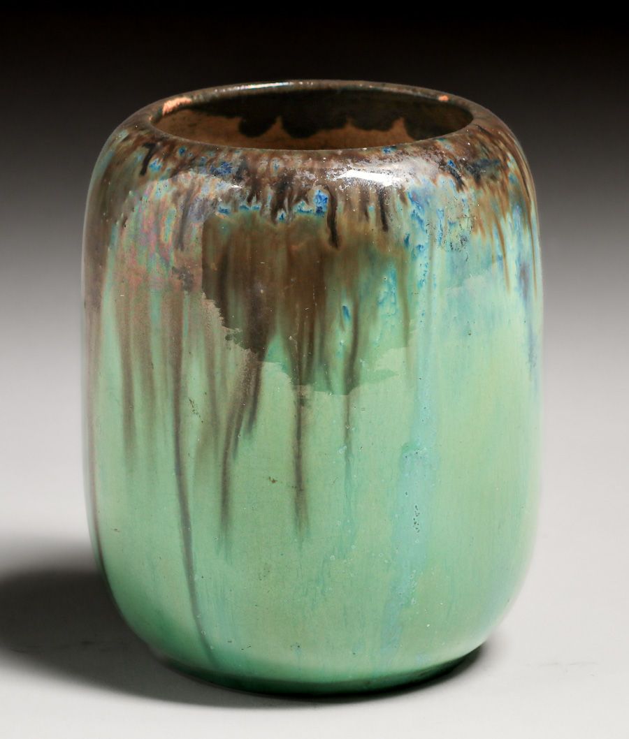 - Fulper Pottery Chinese Green & Mirror Black Drip Flambe Vase c1910s