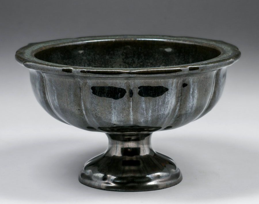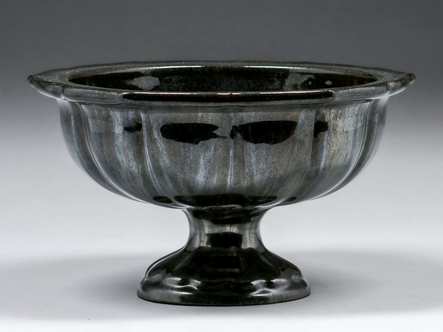 - Fulper Pottery Mirror Black Footed Fruit Bowl c1915-1920