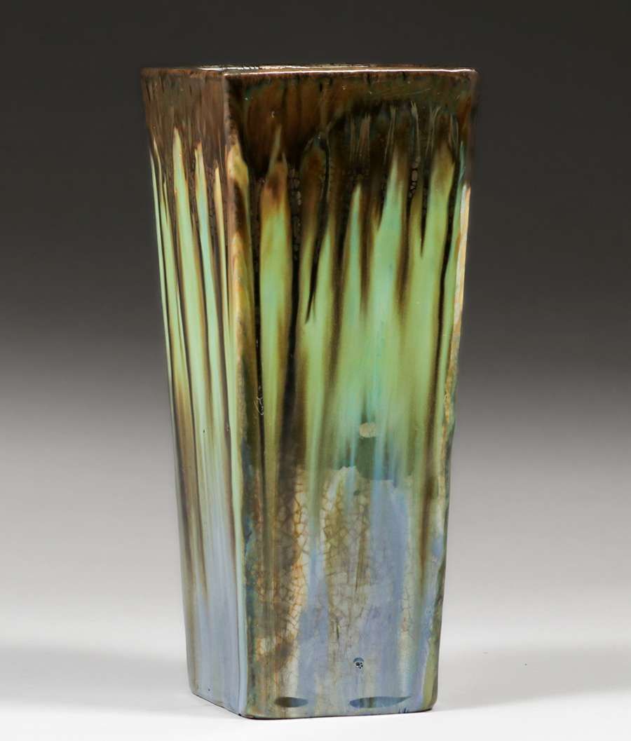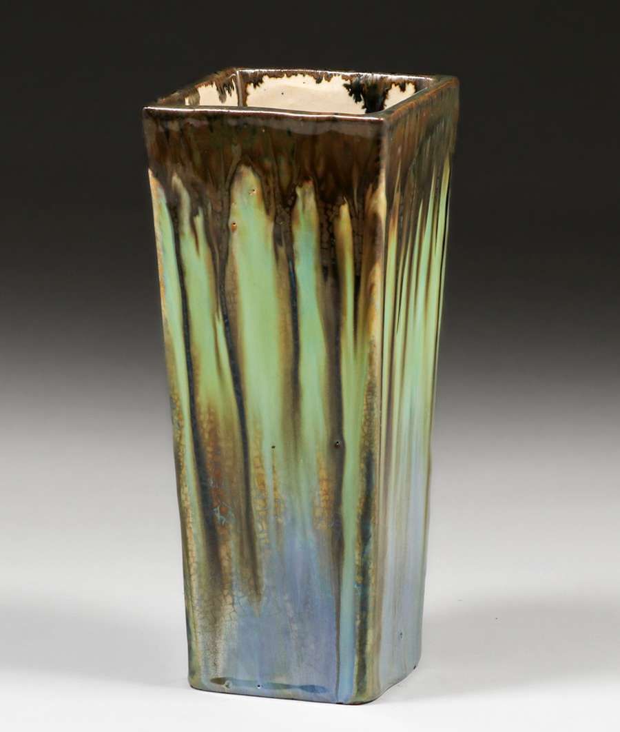 - Fulper Pottery - Prang Square Drip Vase c1910