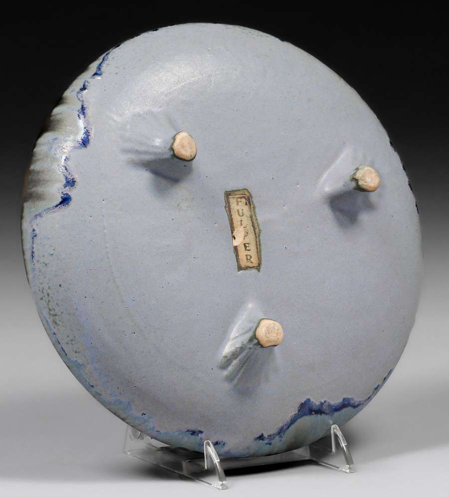 Fulper Pottery Three-Footed Blue Flambe Bowl c1910. Signed. Unusual base chip in center of base within mark, otherwise perfect condition. 8"d x 2"h SOLD