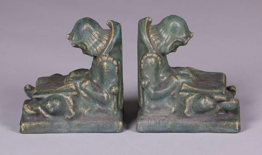 - Fulper "Sleepy-Reader" Matte Green Bookends