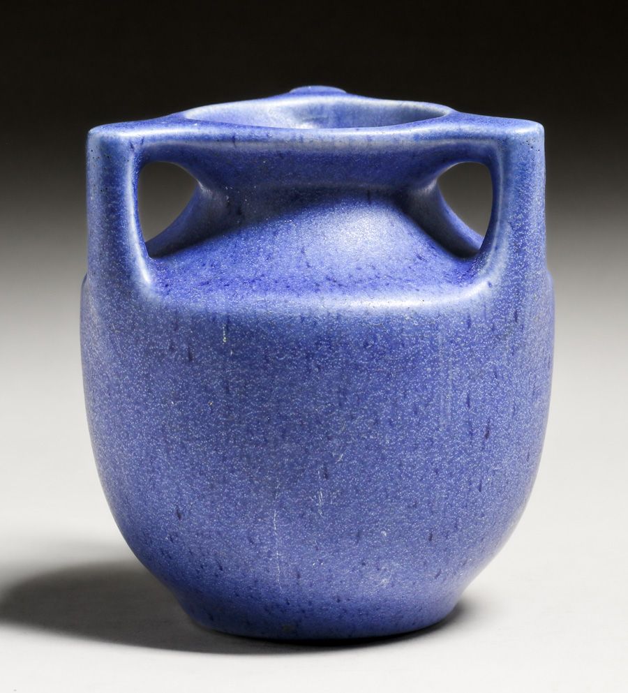 - Fulper Stangl Pottery Matte Blue Three-Handled Vase c1920s