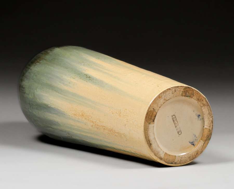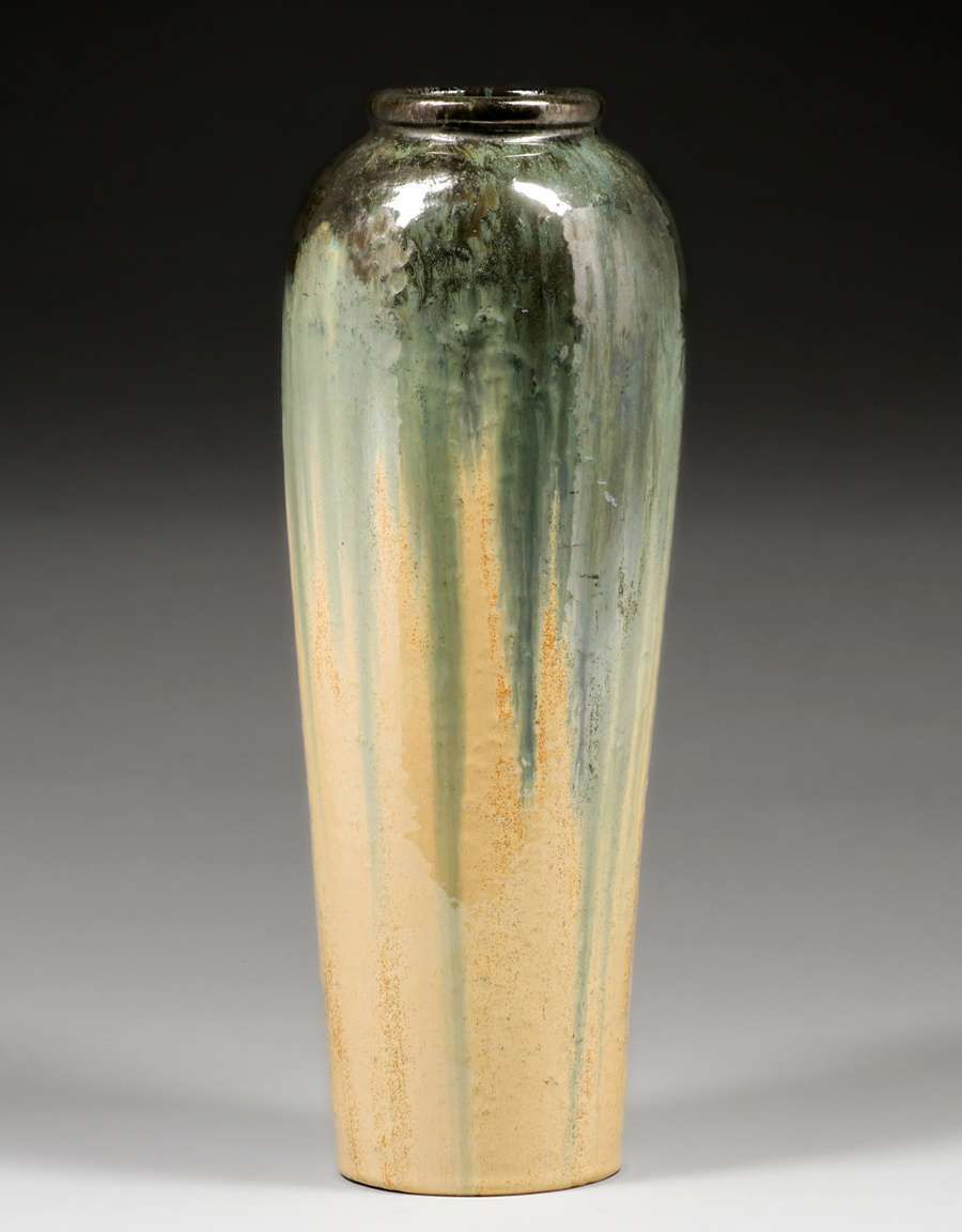- Tall Fulper Pottery Mirror Black & Elephants Breath Flambe Vase c1910