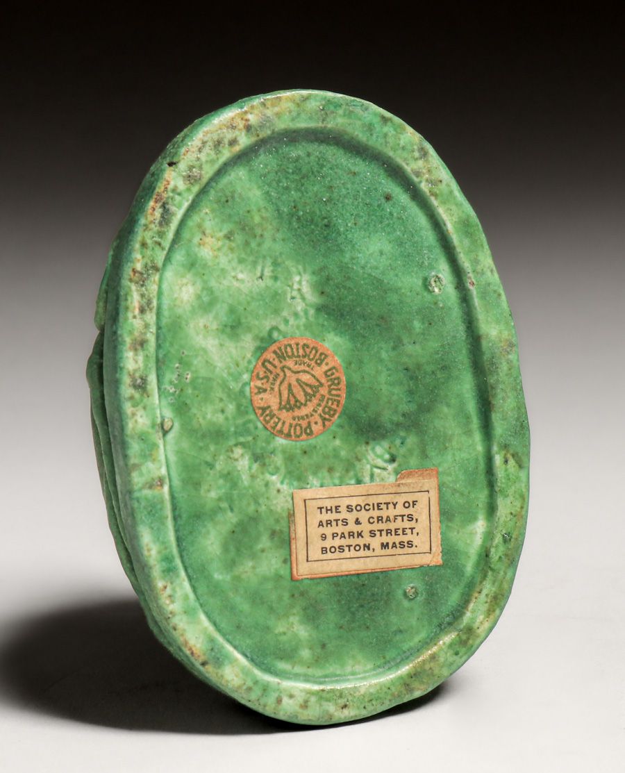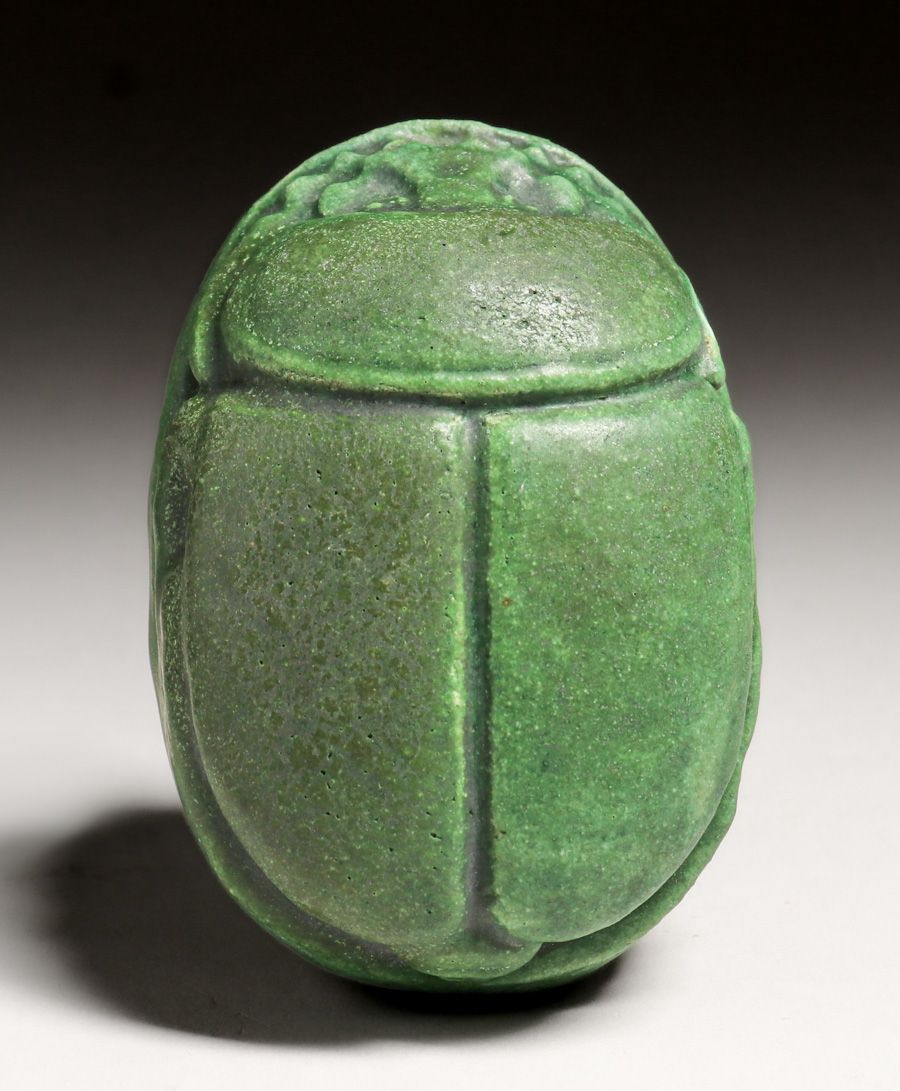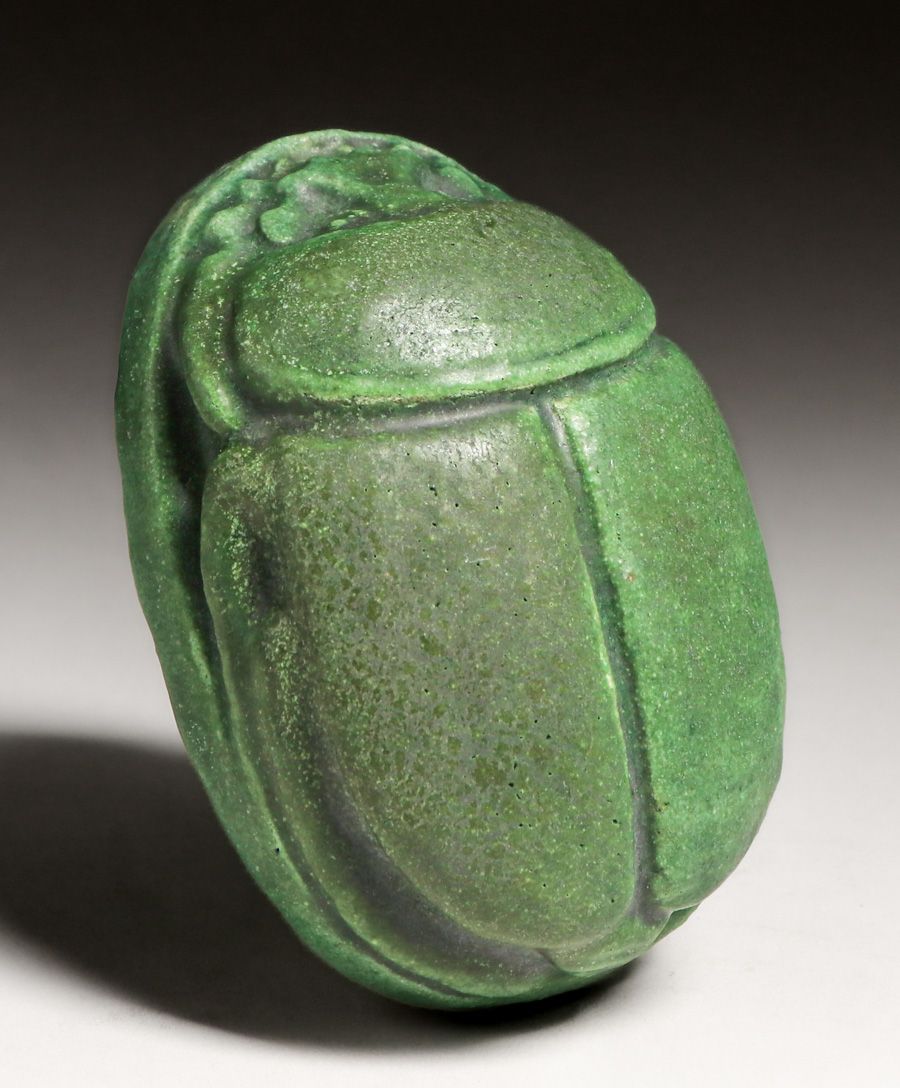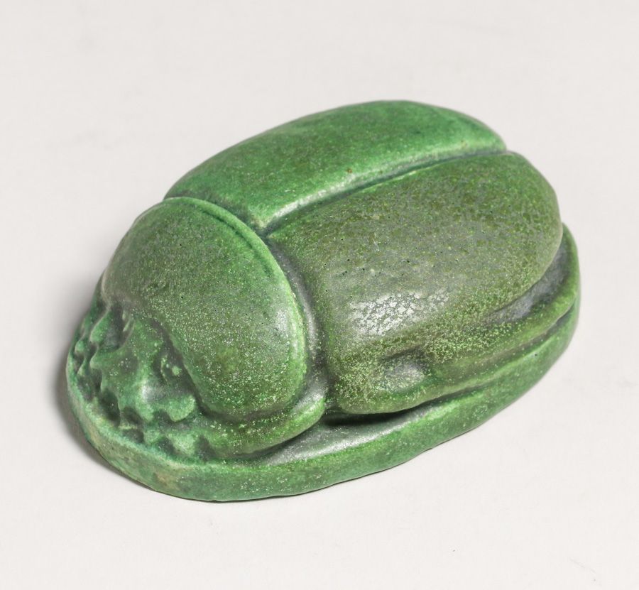 Grueby Matte Green Scarab Paperweight c1910. Signed. Invisible professional restoration to small base chip, otherwise perfect condition. 4″ x 2.75″ x 1.25″h SOLD