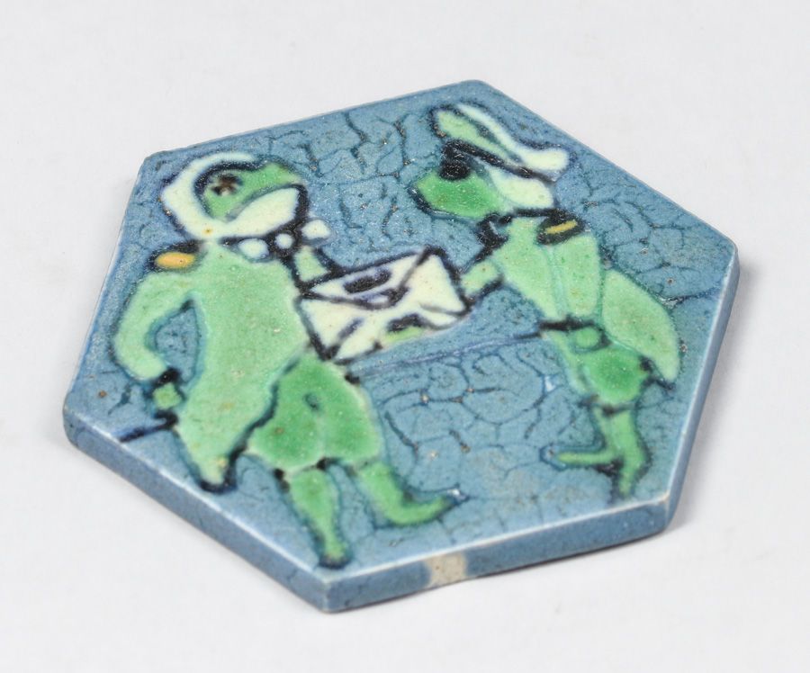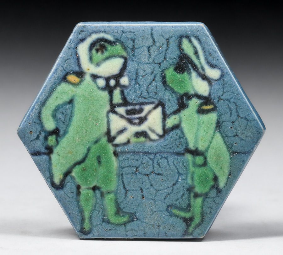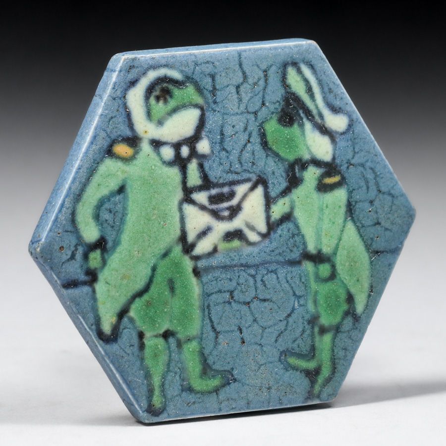 - Grueby - Pardee Tile Works Alice in Wonderland Frog-Footman Tile c1917-1920