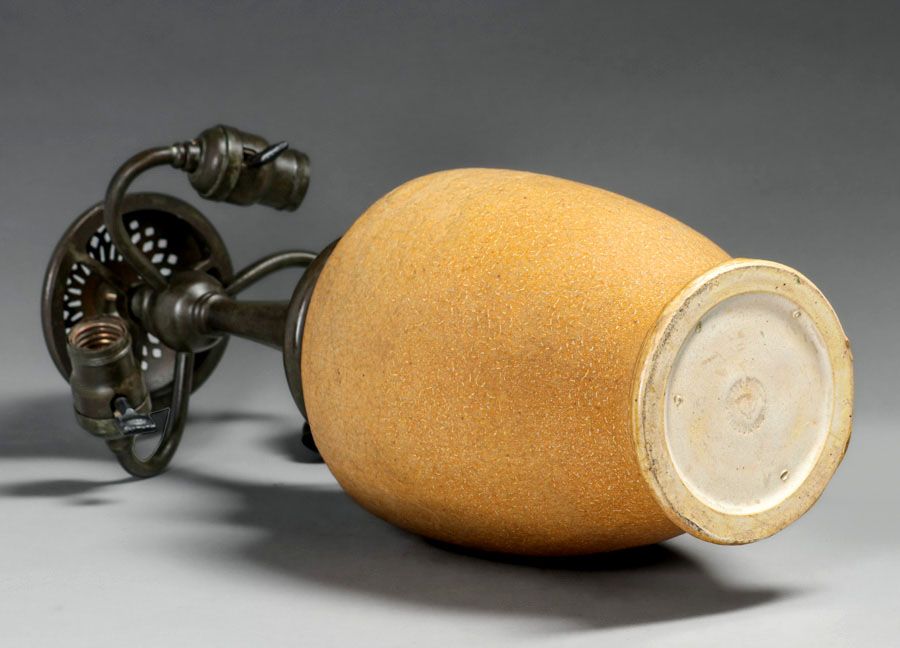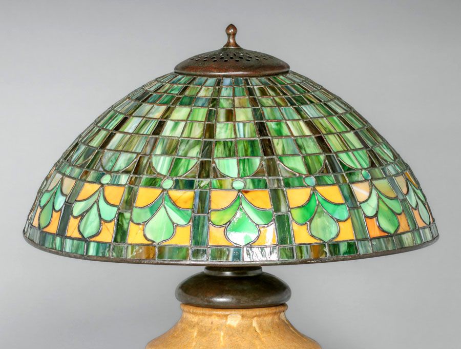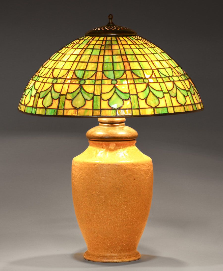 - Grueby Pottery Bigelow & Kennard Leaded Glass Lamp c1910