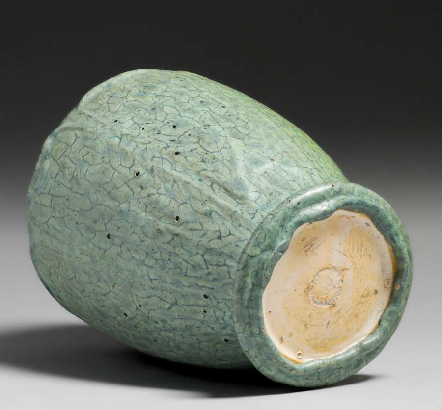 - Unusual Grueby Pottery Ruth Erickson Mottled Matte Blue Green Vase c1905