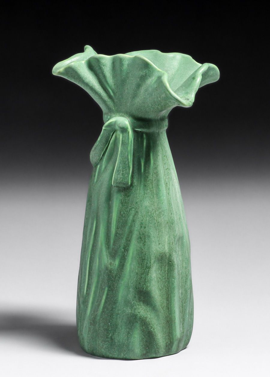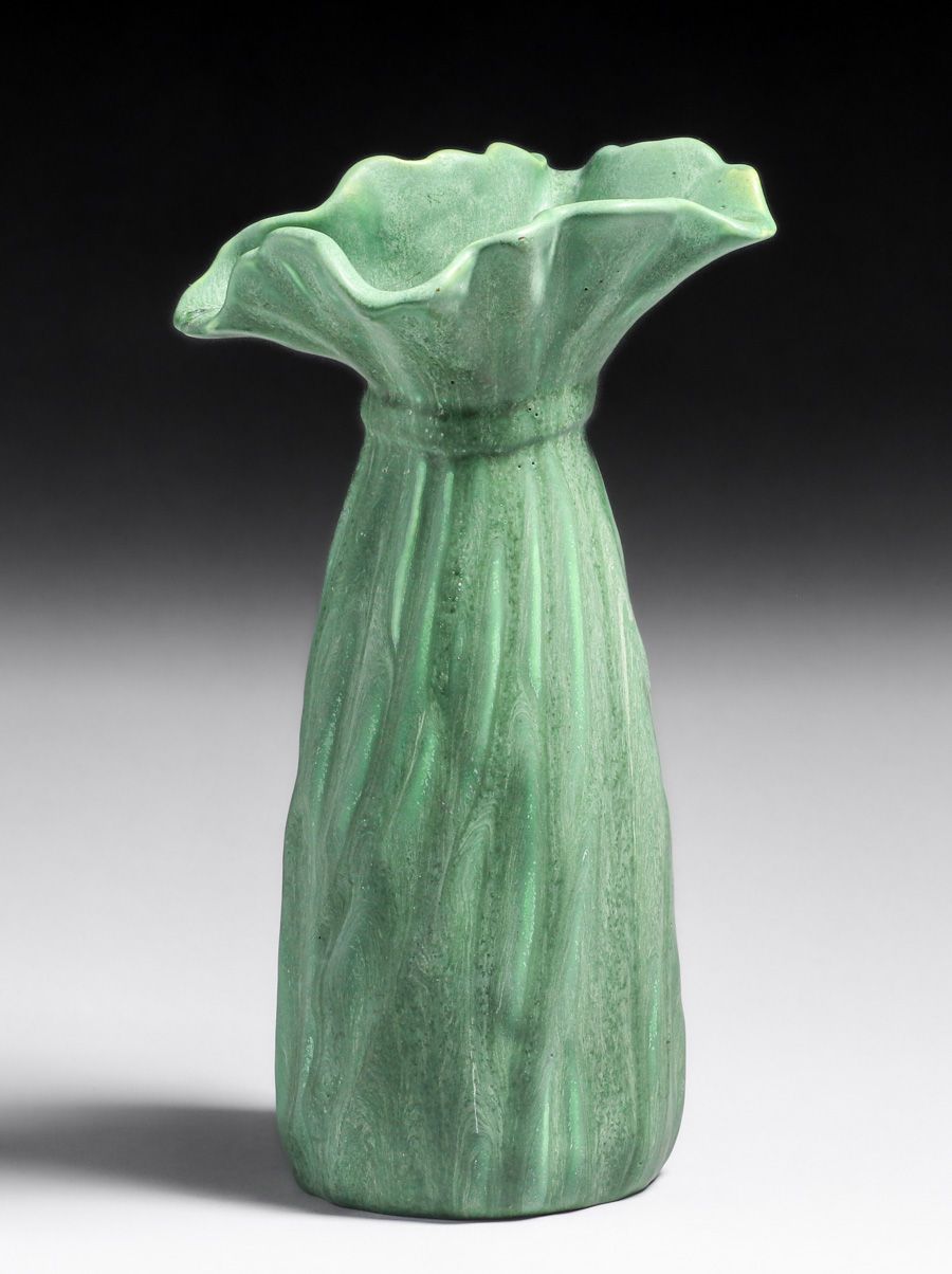 - Hampshire Pottery Matte Green Bowtie Flared Vase c1910