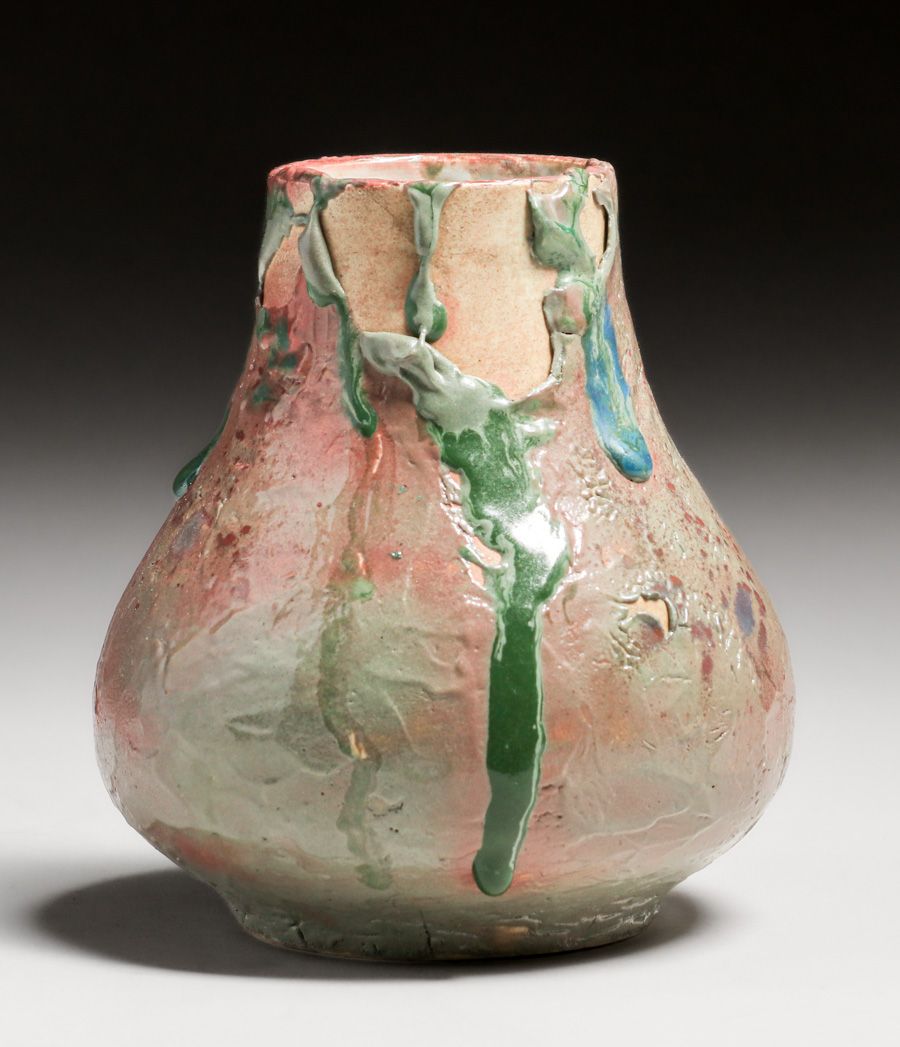 Dedham Pottery Hugh Robertson Experimental Chinese Glazed Drip Vase c1898-1908. Signed. Invisible professional restoration to minor glaze imperfections. 5.5"h x 5"d $7500