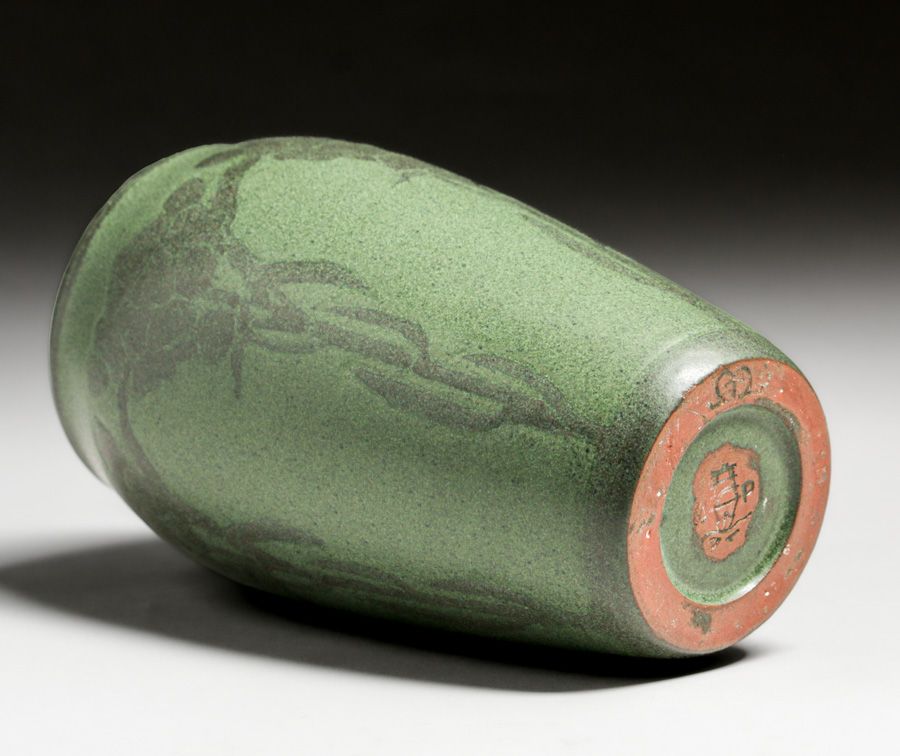 - Early Marblehead Pottery Maude Milner & Sarah Tutt Stylized Rose Decorated Vase c1904-1907