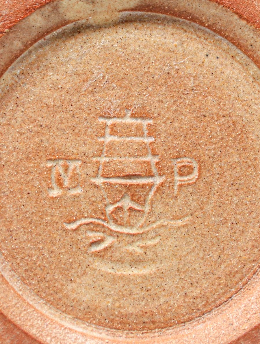 Marblehead Pottery Geometric Floral Decorated Vase c1910. Signed. Invisible professional restoration to tight hairline, otherwise perfect condition. 3 3/8"h x 4"d SOLD