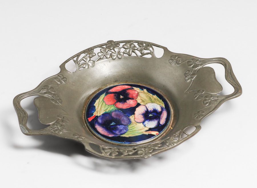 - Liberty & Co Tudric Art Nouveau Pewter & Moorcroft Tile Two-Handled Tray c1900s