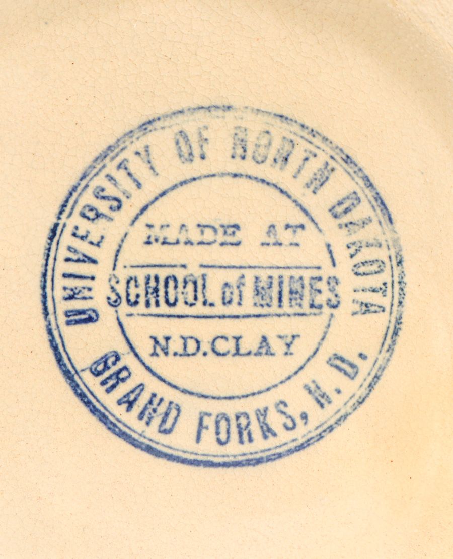 North Dakota School of Mines Covered Humidor c1920s. Signed. Invisible professional restoration to interior flecks, otherwise perfect condition. 6.75"h x 5.5"d SOLD