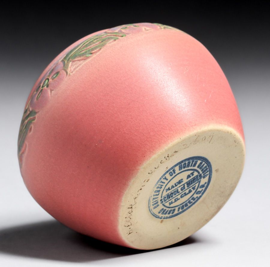 North Dakota School of Mines Erickson Huckfield Carved Vase c1920s. Signed. Perfect condition. 4.5"d x 3.25"h $950