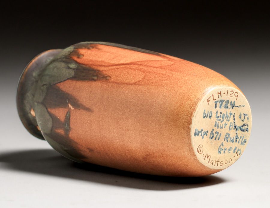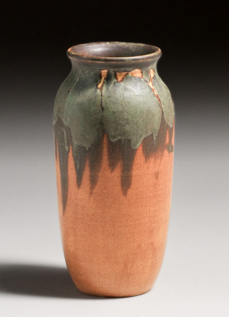 - North Dakota School of Mines Julia Mattson Drip Glaze Test Vase c1920s