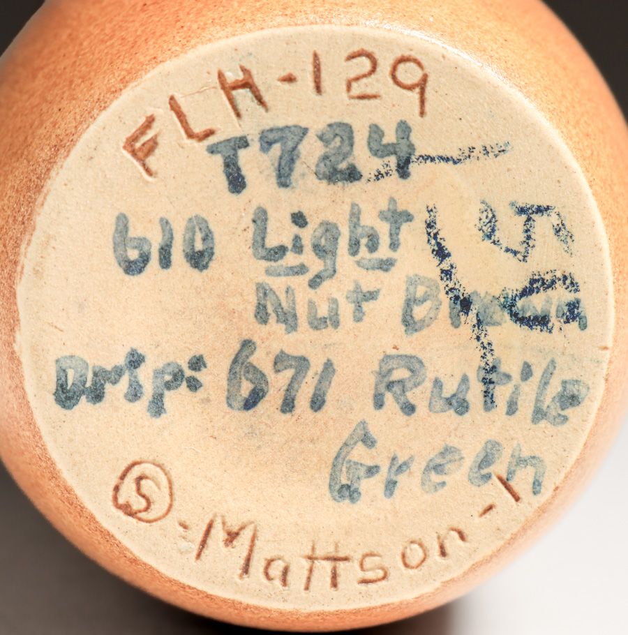 North Dakota School of Mines Julia Mattson Drip Glaze Test Vase c1920s. Signed. Perfect condition. 6.5"h x 3"d SOLD