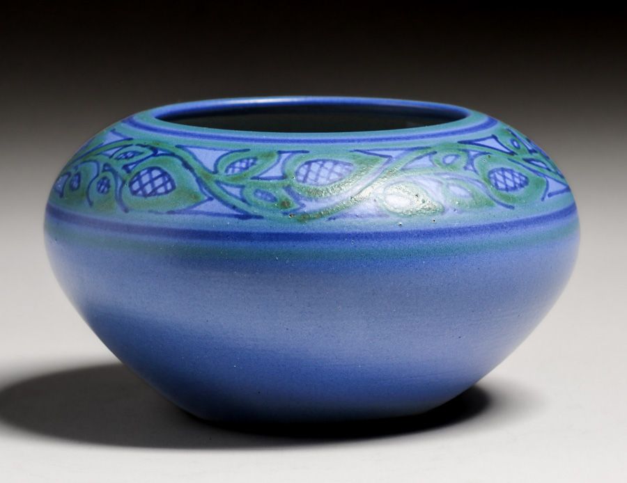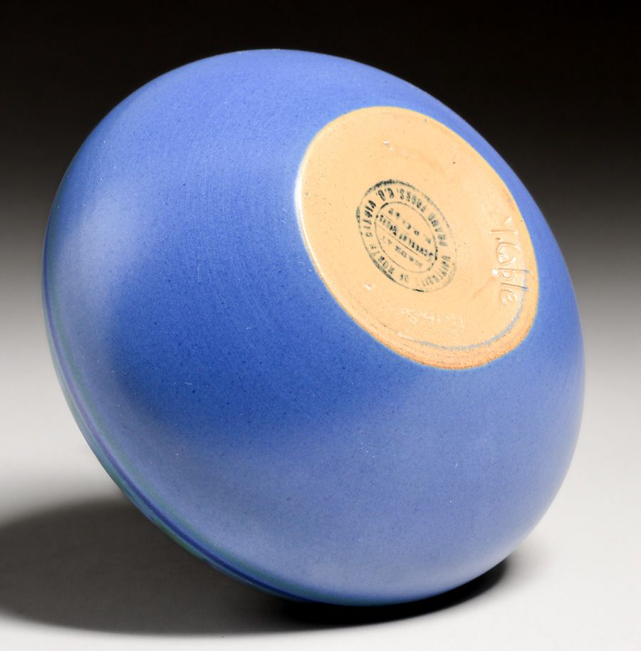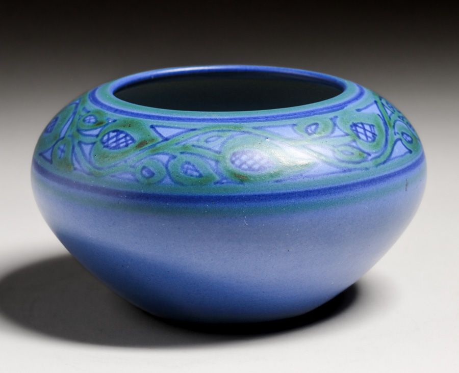 North Dakota School of Mines Margaret Cable Decorated Closed Bowl c1920s. Signed. Perfect condition. 7.25" x 4"d $2200
