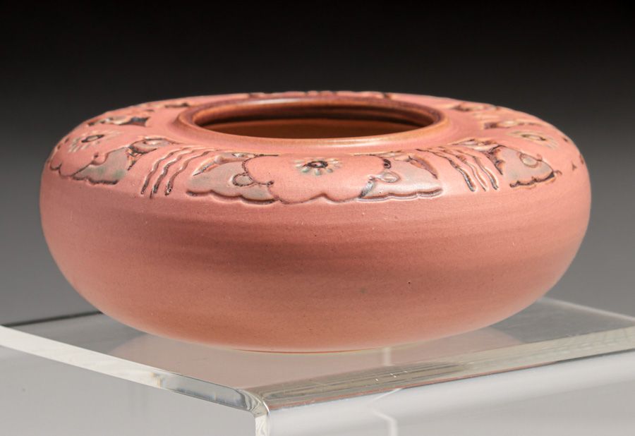 North Dakota School of Mines Margaret Cable Prairie Rose Closed Bowl c1920s. Signed. Perfect condition. 6 3/8"d x 2.75"h SOLD