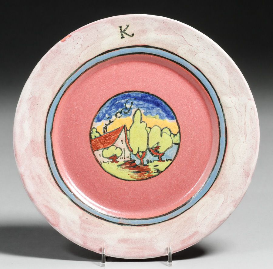 - Paul Revere Pottery Lily Shapiro Landscape Decorated Plate 1931