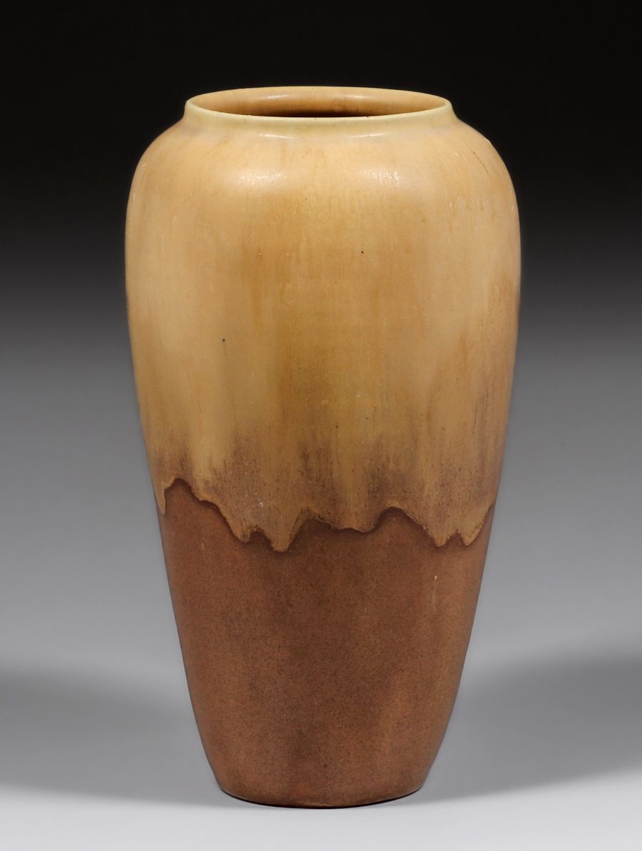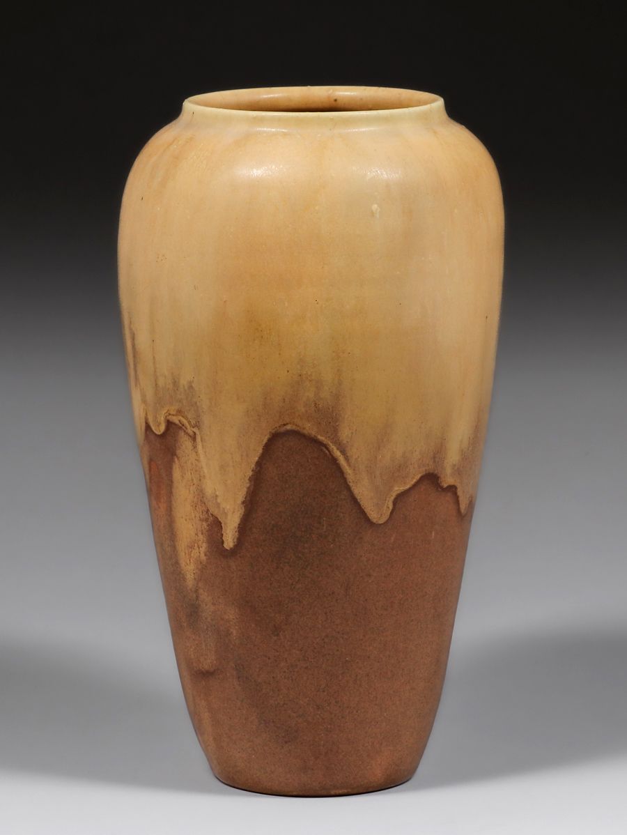 - Early Pewabic Pottery Caramel Drip Glaze Vase c1903-1907