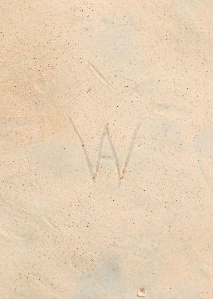 Early Pewabic Pottery Hand-Carved Raven Plate c1905. Artist signed "A.W." Tight hairline appears to be a heavy craze line, otherwise perfect condition. 9.25"d $2200