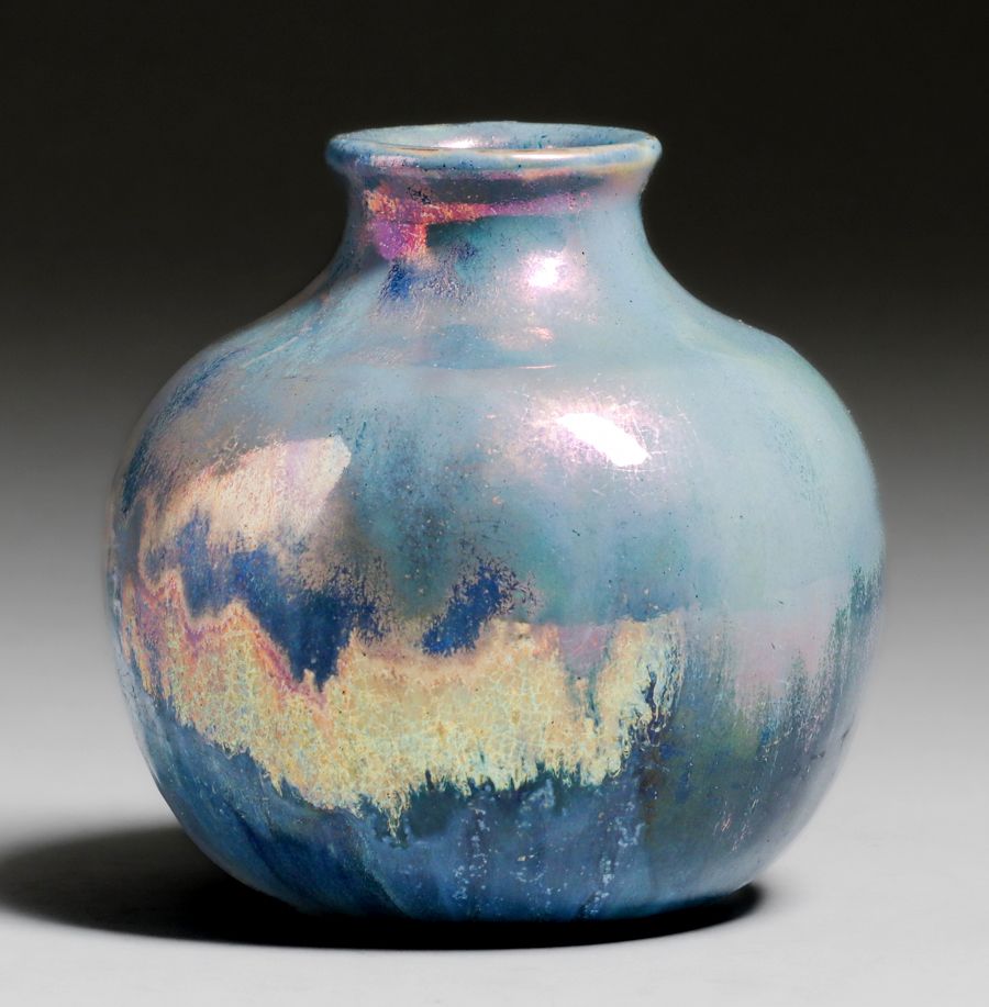 - Pewabic Pottery Iridescent Blue Bulbous Vase c1930s