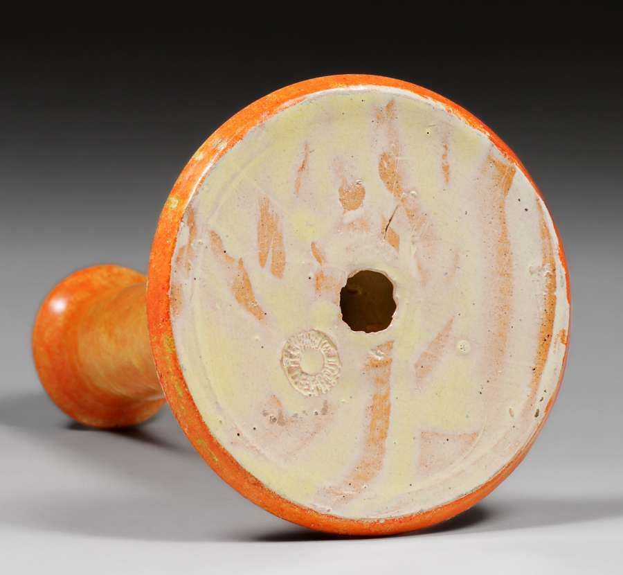 - Pewabic Pottery Iridescent Orange Candlestick c1920s