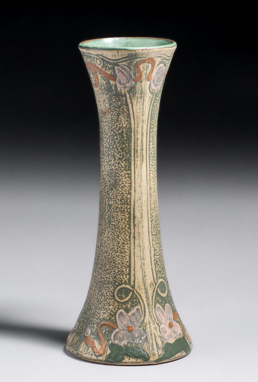 Robinson Ransbottom Pottery Large Luxor Vase c1910s. This form has been has previously been sold as Weller Pottery based on the an erroneous listing in Huxford's Book on Weller Pottery. Unsigned. Perfect condition. 11"h x 4.5"d SOLD