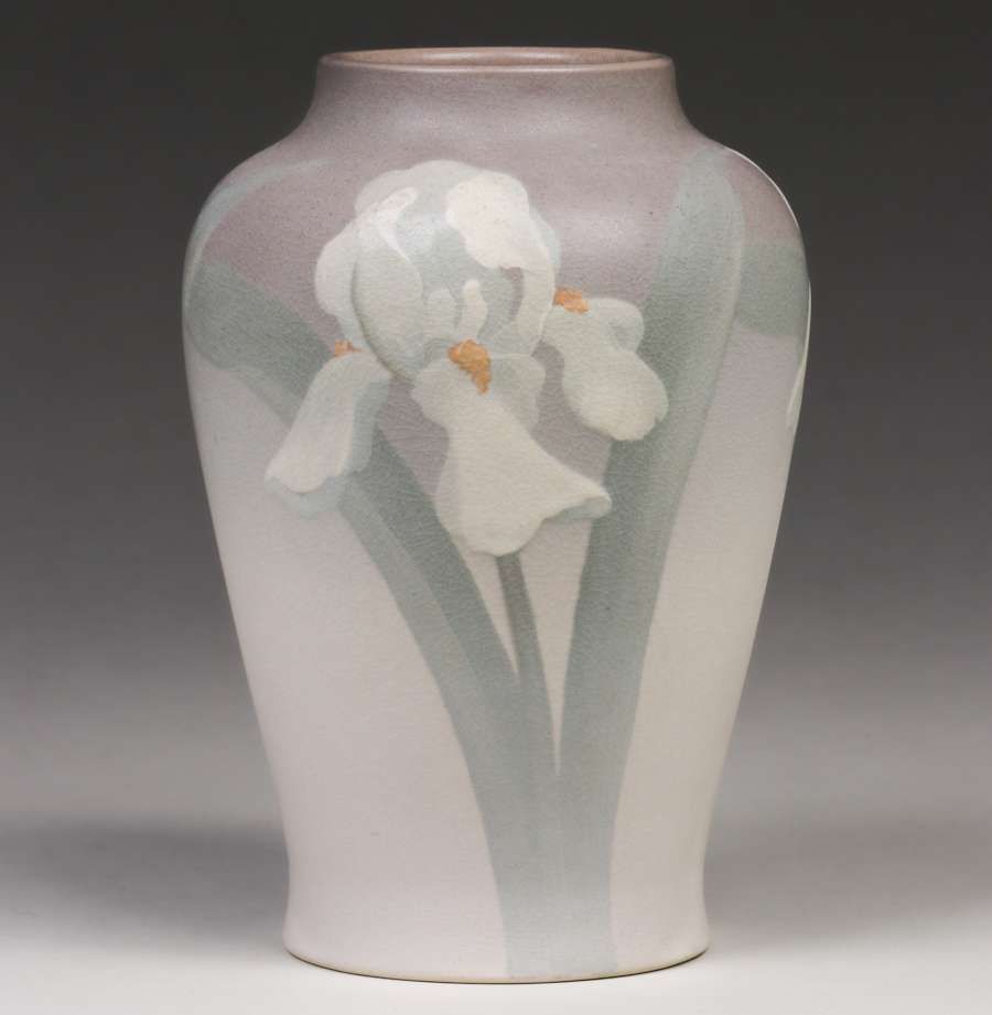 Rookwood Pottery Sara Sax Floral Vellum Vase 1904. Signed. Invisible professional restoration to small base chip, otherwise perfect condition. 8"h x 5.25"d SOLD