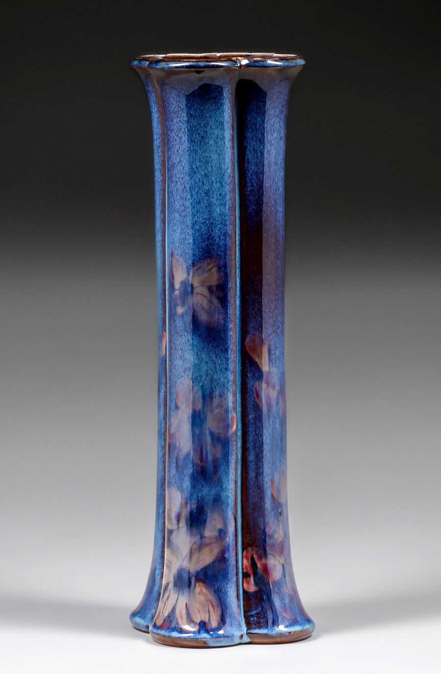 Rookwood Pottery Sara Sax Large Black Opal Quatrefoil Floral Vase 1927. Signed. Perfect condition. 17h x 5.75d inches SOLD