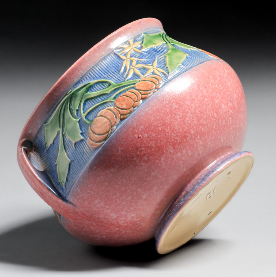 - Roseville Pottery Pink Baneda Two-Handled Jardiniere c1930s