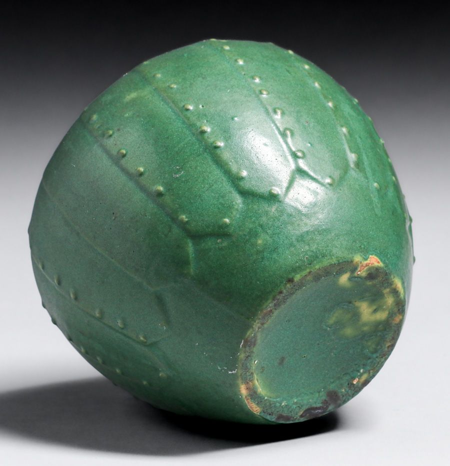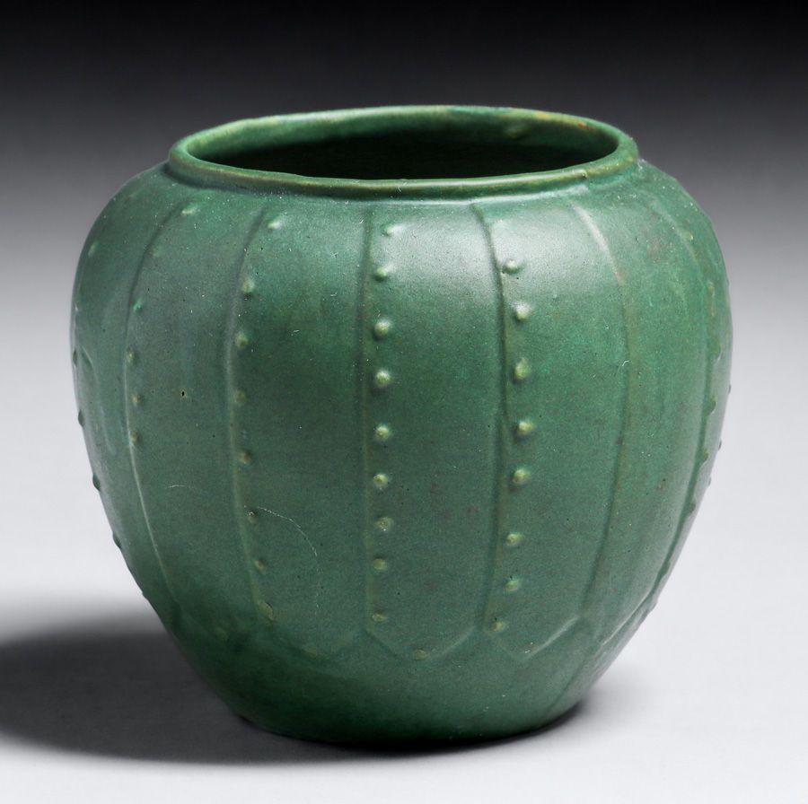 - Strobl Pottery – Cincinnati Matte Green Ribbed Vase c1910