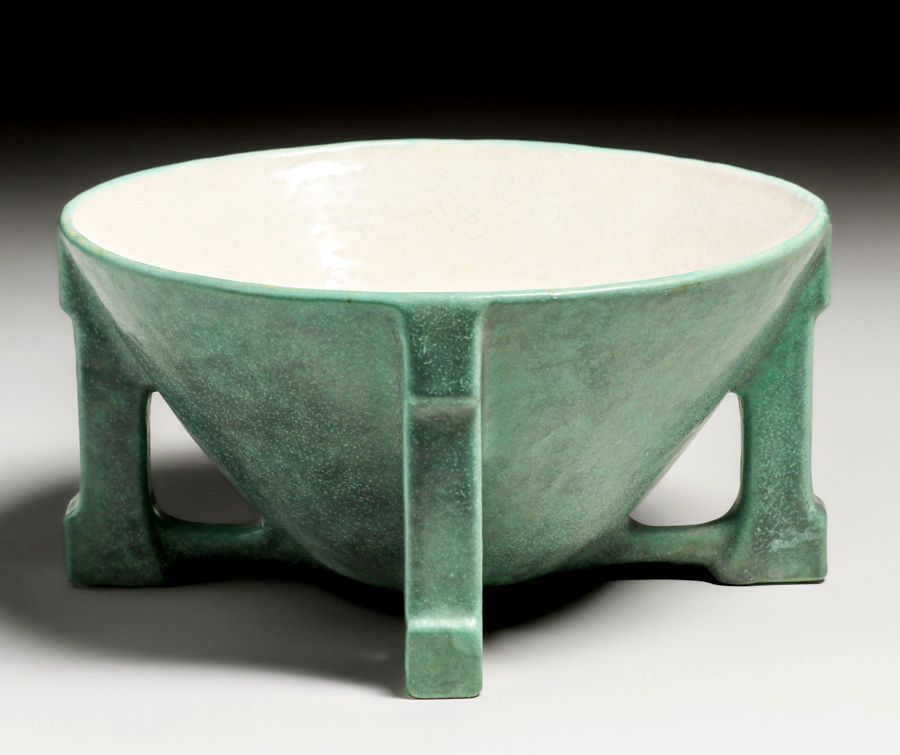 - Teco Pottery #400 Matte Green Buttress Bowl c1910