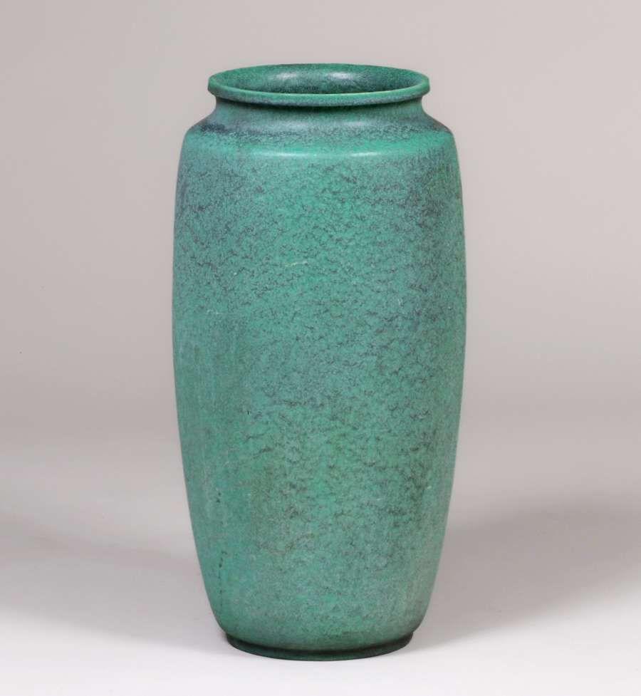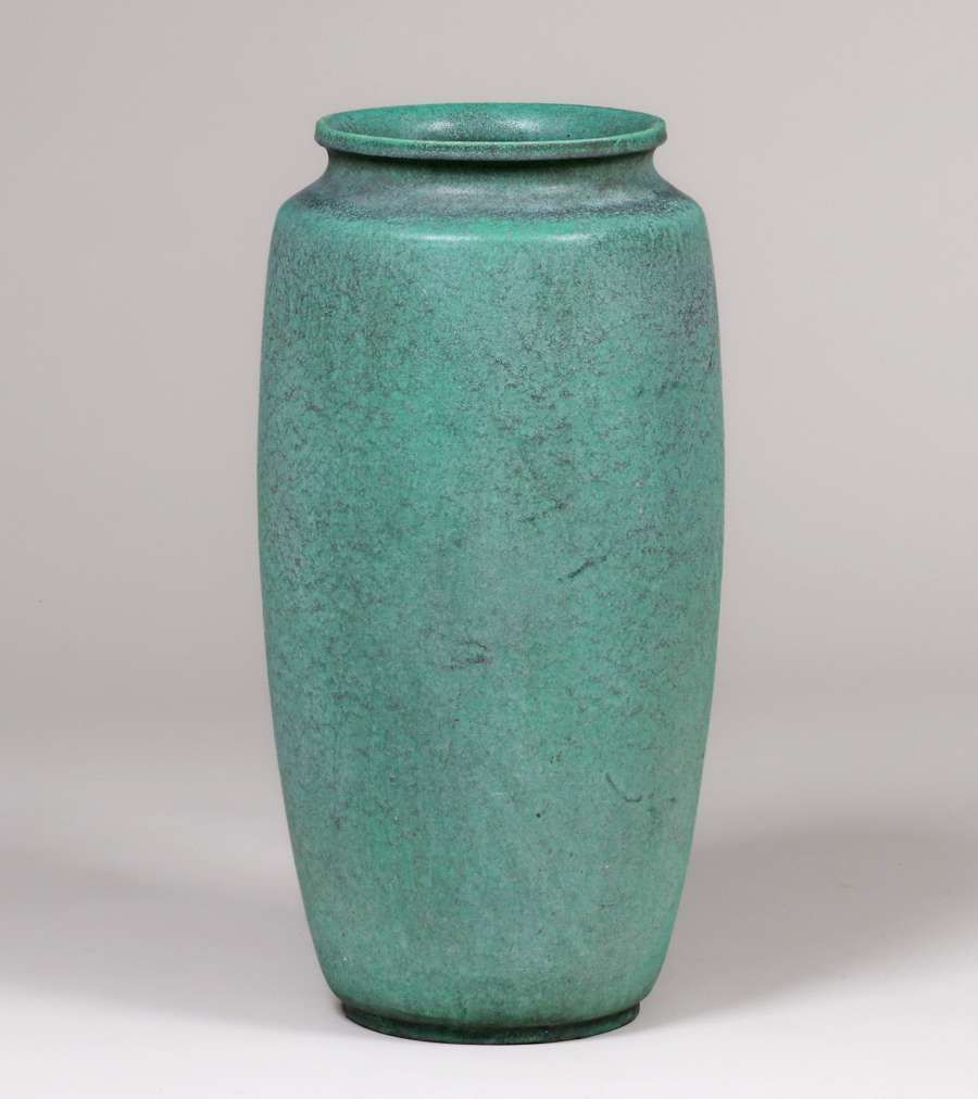 - Teco Pottery Matte Green 27"h Garden Vase c1910