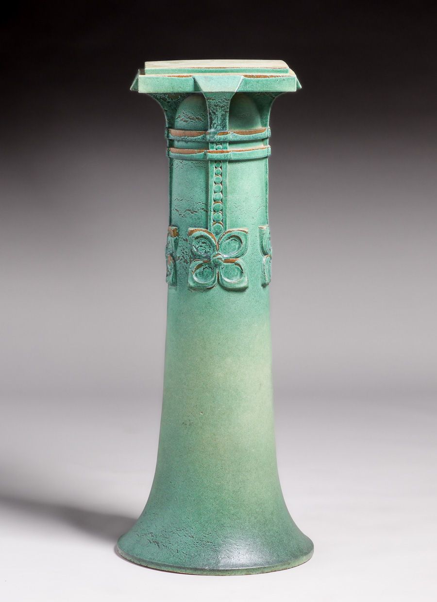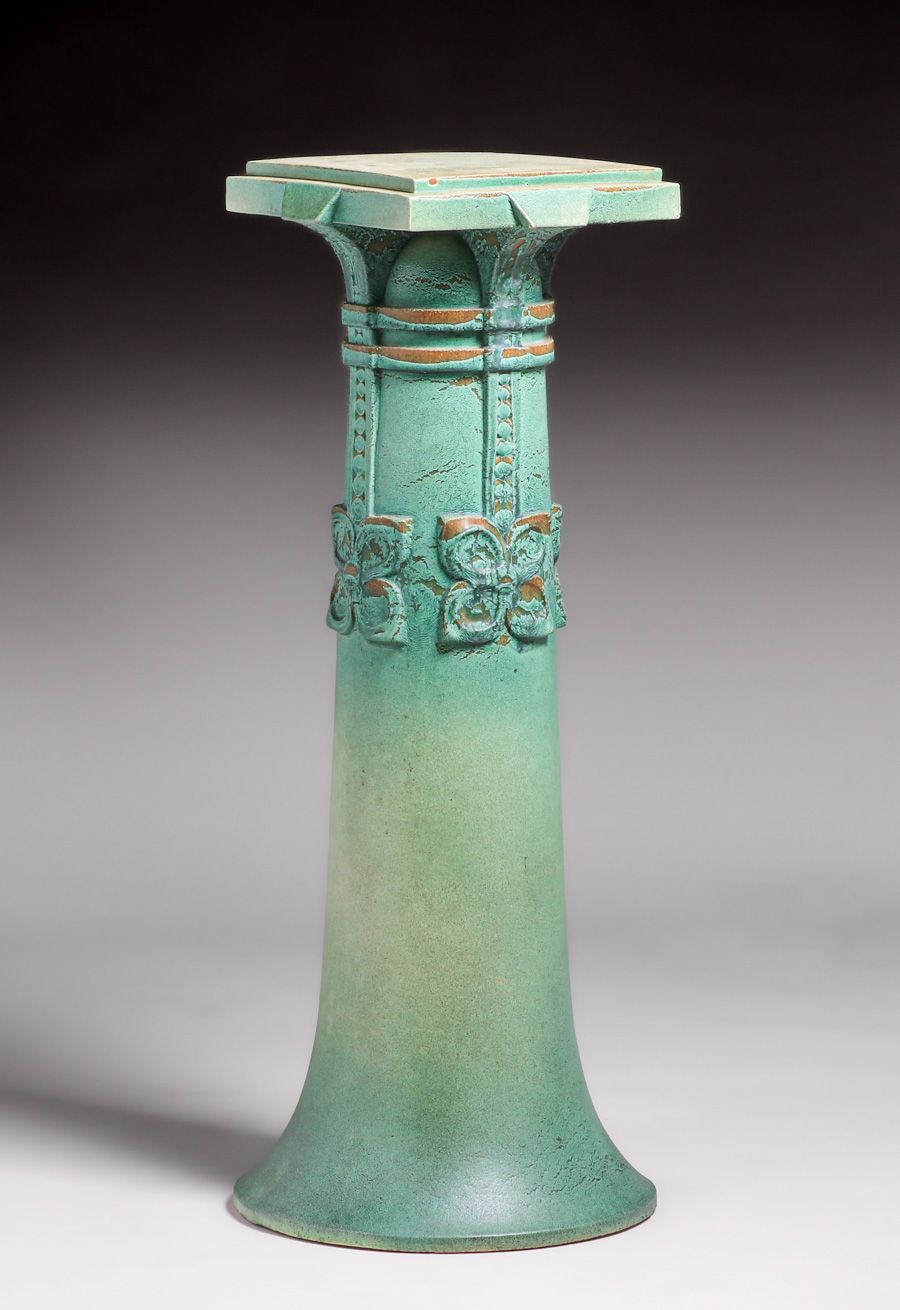 - Teco Pottery Matte Green Elmslie & Purcell Garden Pedestal c1915