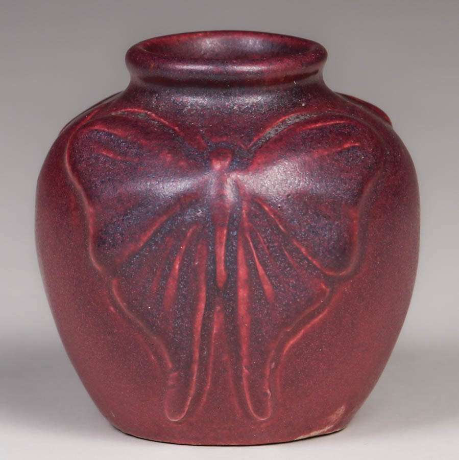 - Small Van Briggle Matte Glazed Moth Cabinet Vase c1918