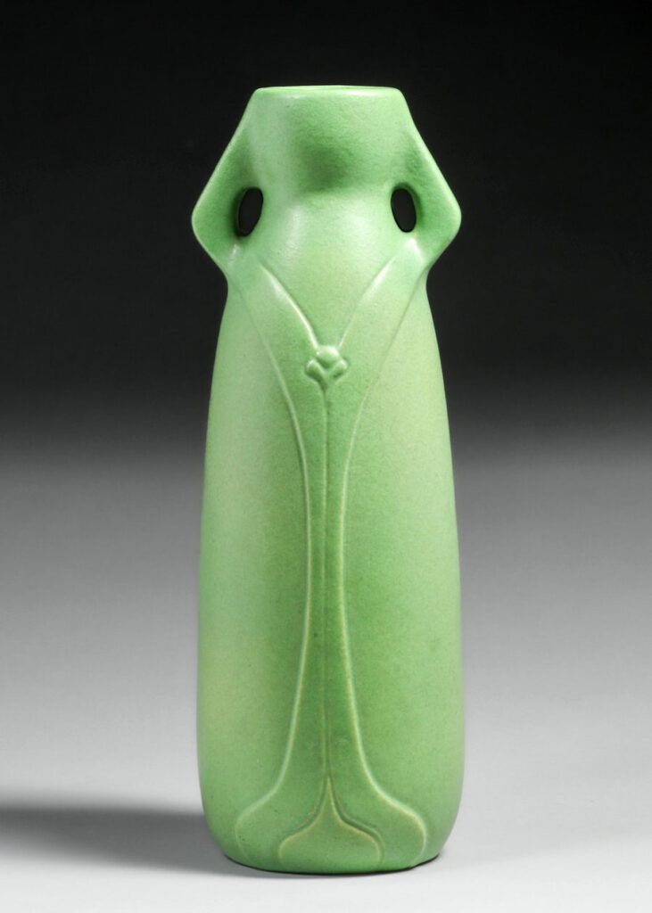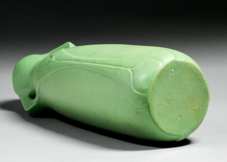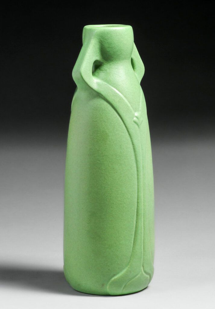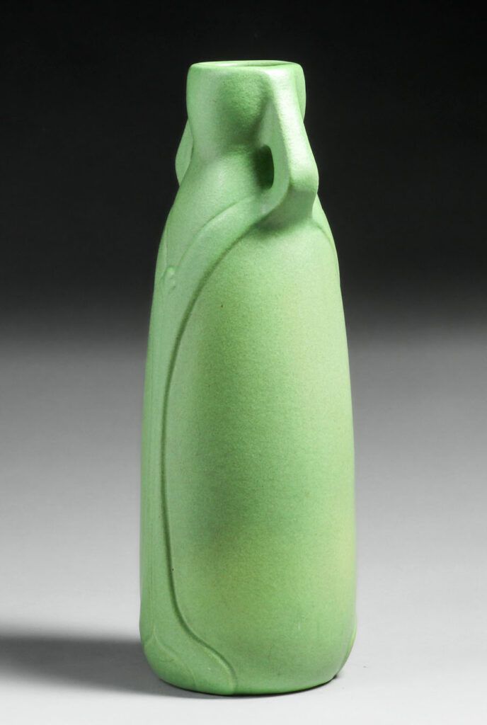 - Tall Early Van Briggle Matte Green Two-Handled Vase 1903.